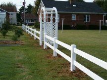 Kroy White Vinyl 2 Rail Ranch Fence w/ New England Nantucket II Arbor